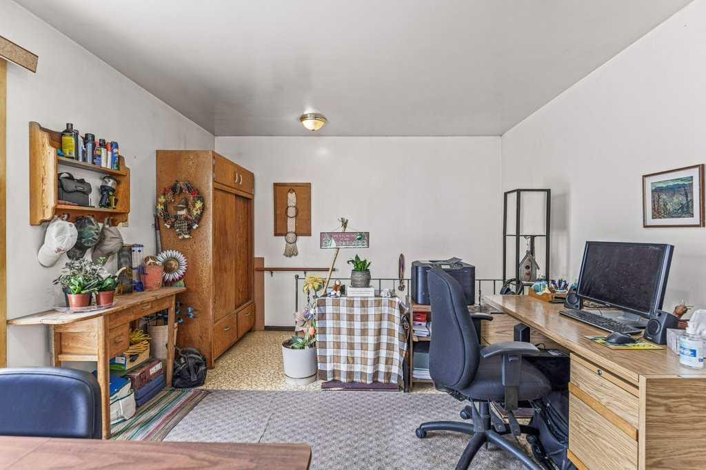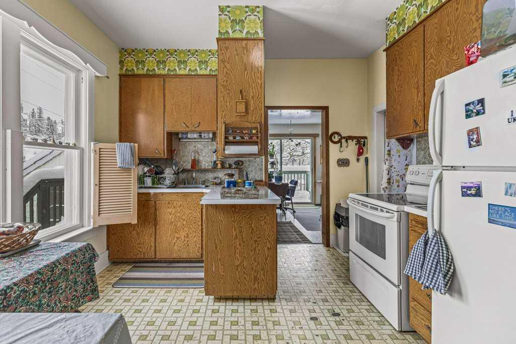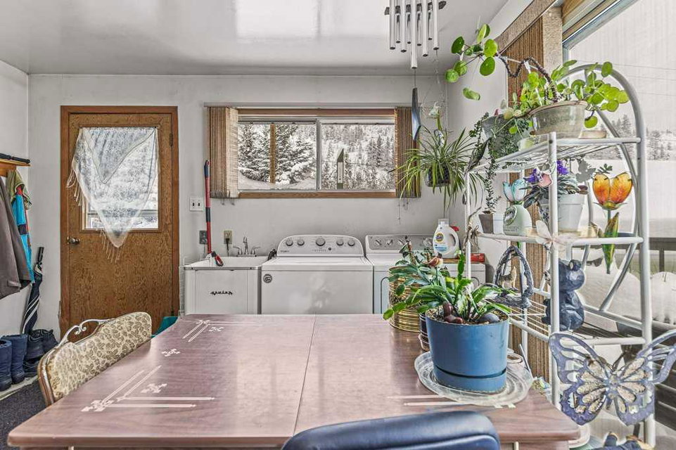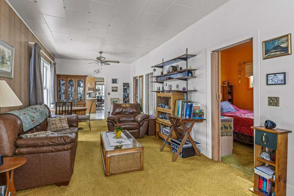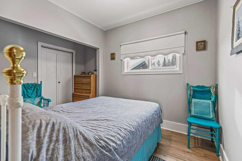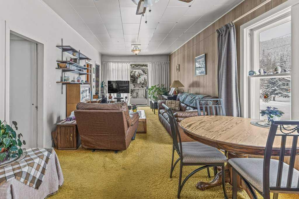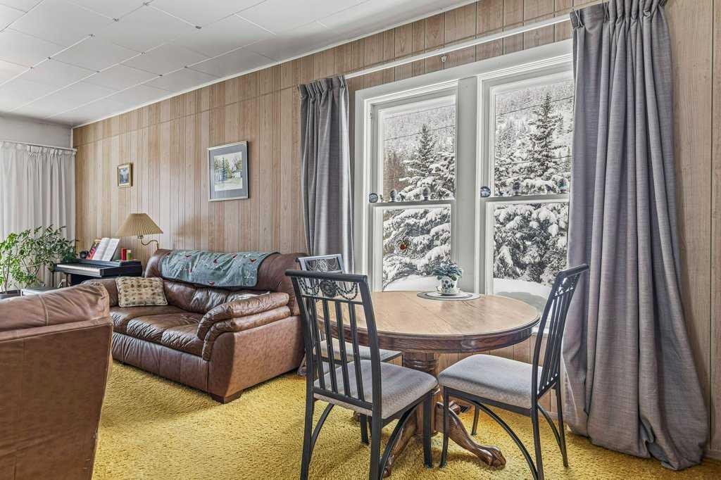 Nestled in the charming mountain community of Exshaw, Alberta, this captivating bungalow is a gem. Situated on a generous corner lot, it boasts stunning mountain views that paint a breathtaking backdrop to your everyday life. With a spacious backyard, this property is great for outdoor lifestyle offering ample space for gardening, play, and relaxation. This 4-bedroom home provides comfort and convenience, with a thoughtfully designed layout on 2 levels. The large gravel driveway can accommodate up to 6 vehicles, making hosting friends and family a breeze. In addition, a 1-car garage offers extra storage and shelter from the elements. For those seeking entertainment, the basement houses a recreation room, providing a versatile space for leisure activities. With a total interior space of 1,750.54 square feet, this home offers ample room for your family’s needs. Don’t miss this opportunity to own a piece of Exshaw’s natural beauty and a cozy bungalow that’s perfectly suited to your lifestyle – Other goods included are New basement windows and flooring for the front bedroom, original bedroom doors in the garage.