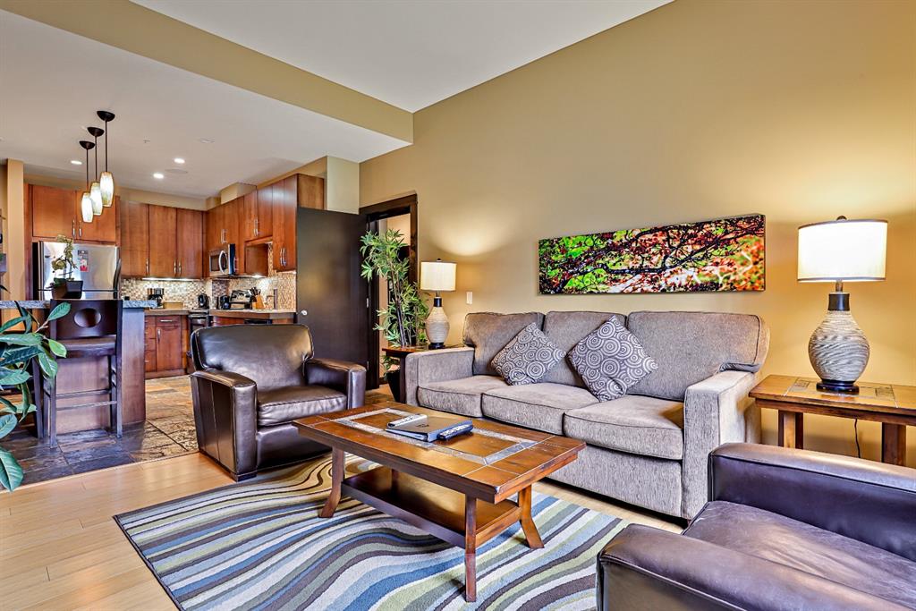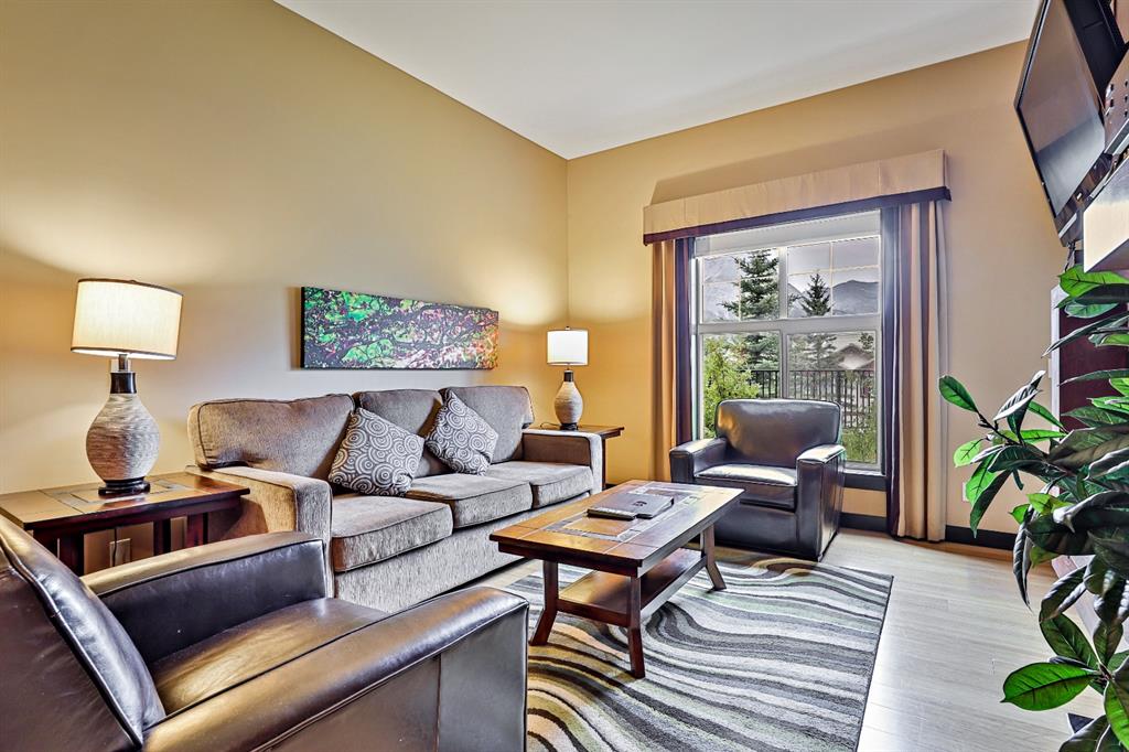 Looking for a nice affordable condo in Canmore?? Get your 1/4 share of the Mountains and start earning revenue. Enjoy 12 weeks of the year (1 week/month). A fully furnished 2 bedroom, 2 bathroom, with 1 of the bedrooms being a separate LOCK-OFF, both providing great views of the Mountains. . The kitchen and living room are designed for relaxation; complete with bamboo flooring, a fireplace, pullout bed, mounted tv, and access to the patio. The kitchen has large island that is perfect for preparing meals or entertaining and you’ll love the large deck to unwind after the day’s activities. The primary bedroom is spacious and luxurious, offering a fantastic night sleep. The completely separate lock off bedroom has its own 4 piece bathroom. The owners unit is pet friendly, so don’t leave anyone behind. Contact your agent and get a piece of “Mountain Zen” for yourself or the whole family.