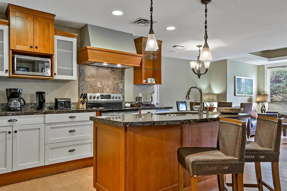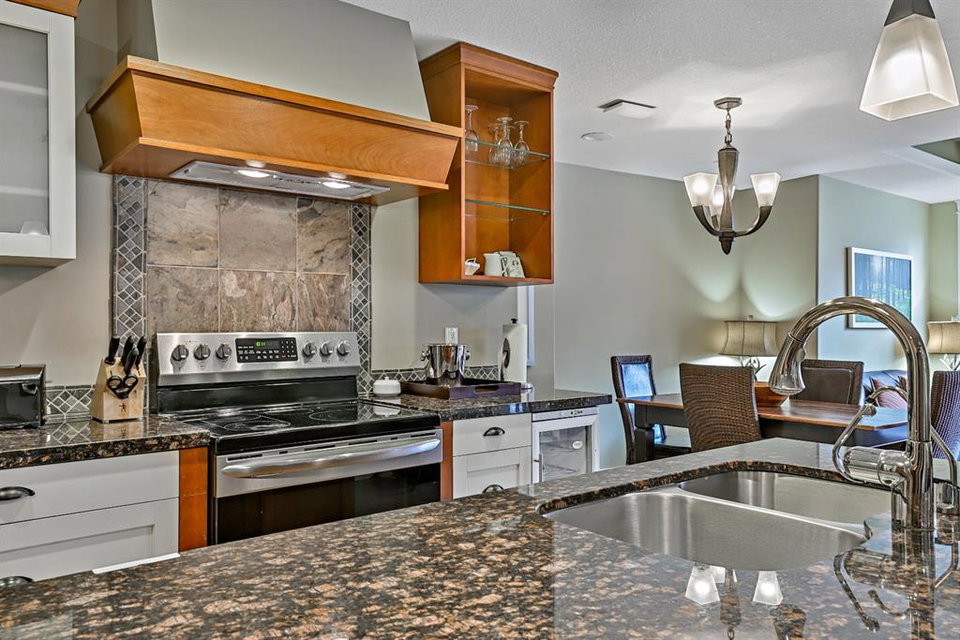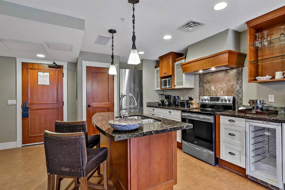 This Luxurious Solara Resort & Spa, exquisite 1 bedroom 1 bathroom suite, features everything you are looking for in a Mountain Retreat. It will be your home away from home!! With contemporary mountain architecture, interior design and décor, this property offers everything you will need. The large living area includes a full kitchen with an island, dining table and spacious living area, complete with a relaxing fireplace. You will appreciate the special touches like the granite countertops, stainless steel appliances, wine fridge and the warm feel of the cork flooring. Onsite amenities include a spa, highly regarded physiotherapy clinic, well equipped fitness center, ski waxing room, indoor hot tub & pool, theatre with nightly movies and large storage lockers. Comes fully furnished and sleeps 4 with the pullout couch and it is pet friendly. Located within an easy walking distance to everything Canmore has to offer. Contact your Associate for a viewing.