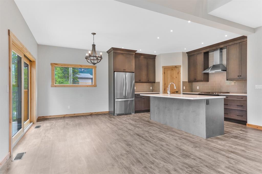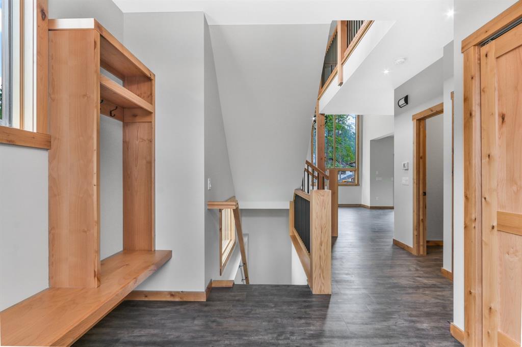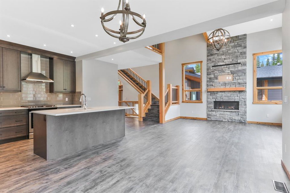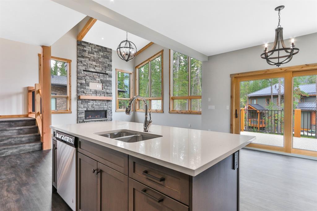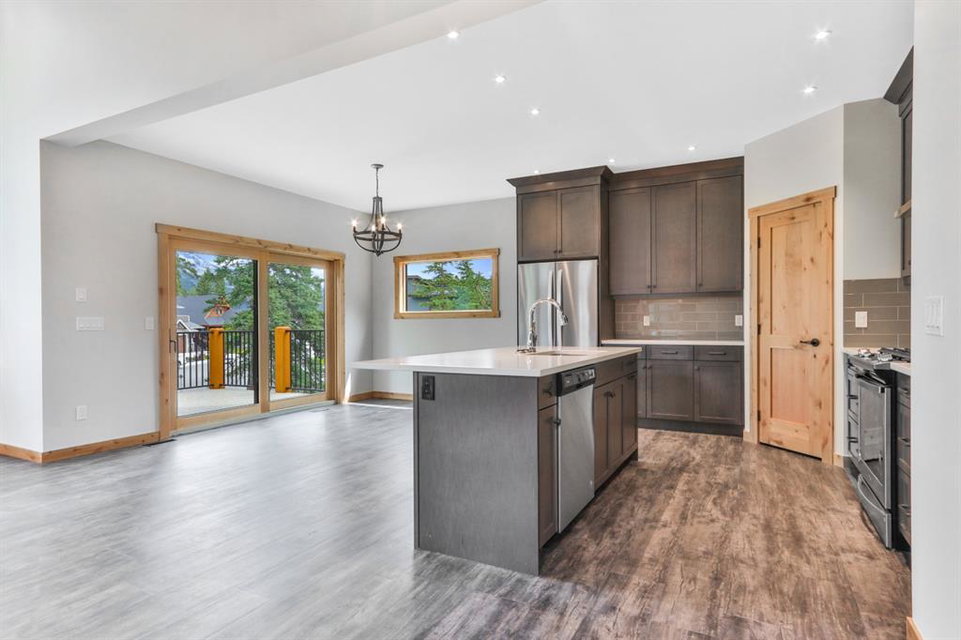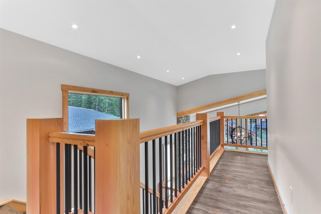 The main level offers open concept living perfect for entertaining. The kitchen features stainless steel appliances, Quartz- Bianco Carrara countertops and a large island; coupled with a deck that provides direct access to the sprawling low-maintenance back yard. Upstairs you will find the Master with generous 5 piece Ensuite & walkin closet, 2 more bedrooms (each with their own walk-in closet!) a full guest bathroom and laundry room. The lower walkout level offers an addt’l bedroom, full bath, and a large rec room with plenty of storagewith zoning and configuaration that allows for a Legal Suite or AirBnB rental! A double car garage for all of your toys and adventure gear rounds out fantastic family home. Thoughtfully designed, Masterfully Built, Nestled in a budding community surrounded by forest… and only minutes from Canmore!