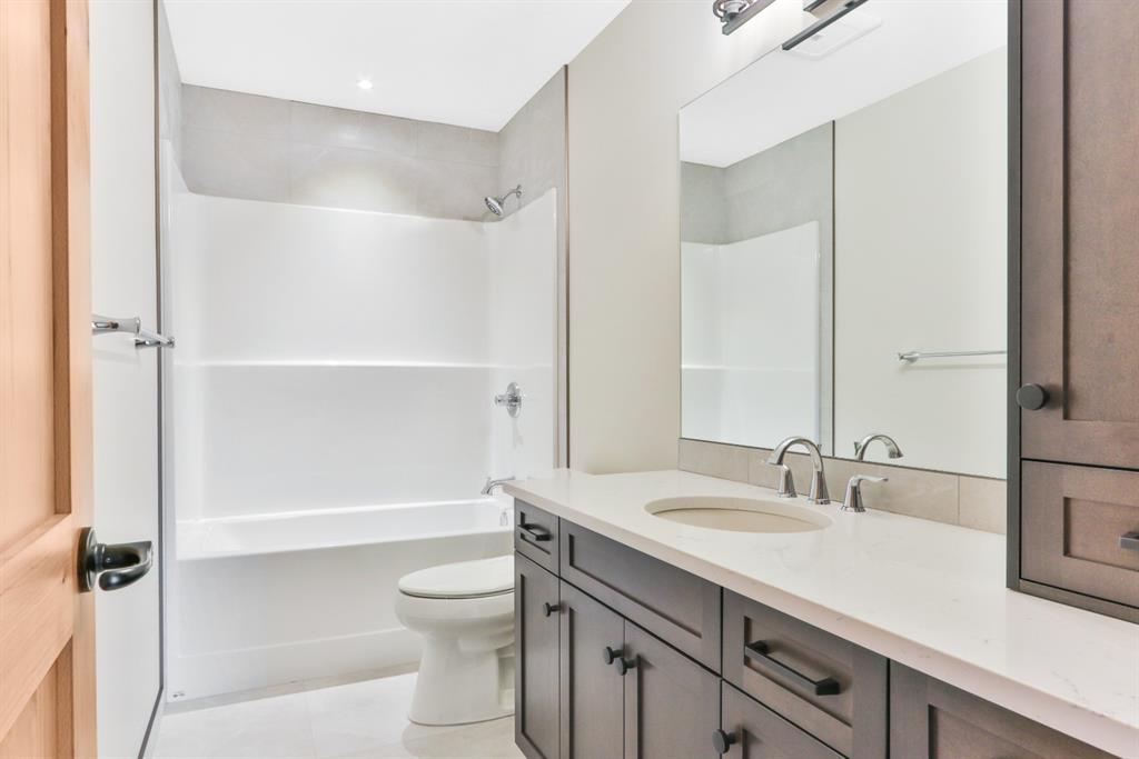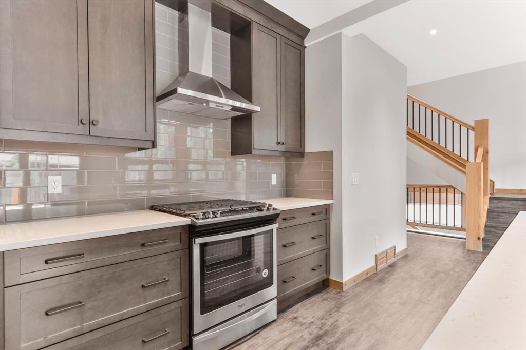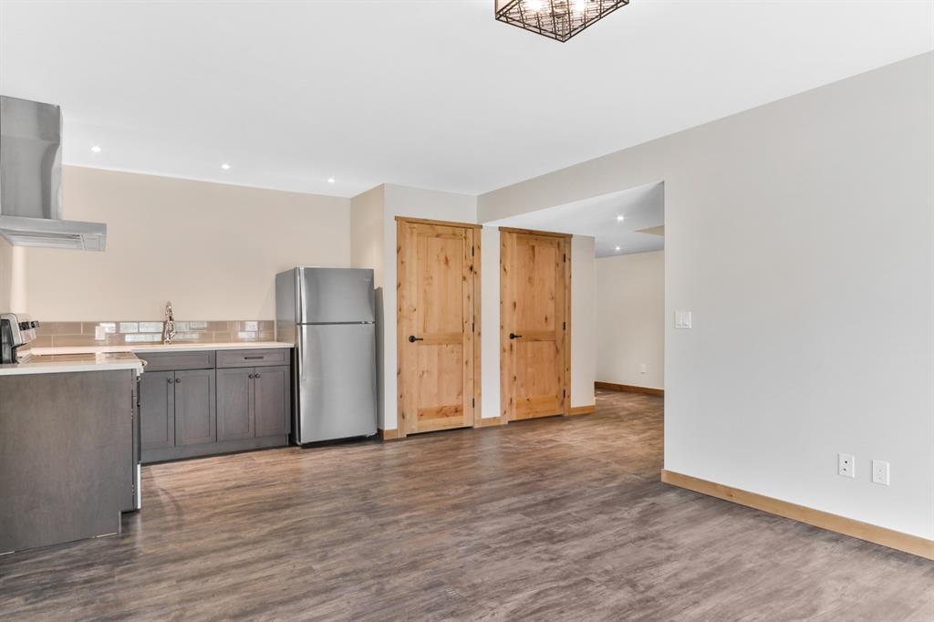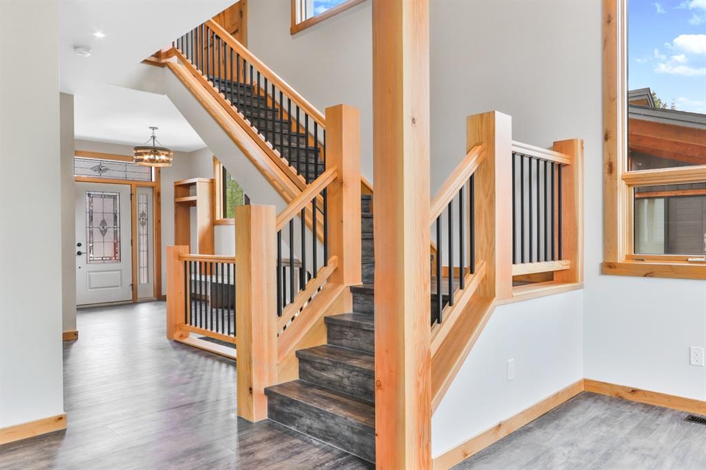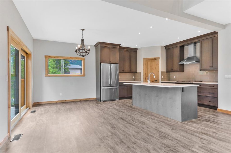 The main level offers open concept living perfect for entertaining. The kitchen features stainless steel appliances, Quartz- Bianco Carrara countertops and a large island; coupled with a deck that provides direct access to the sprawling low-maintenance back yard. Upstairs you will find the Master with generous 5 piece Ensuite & walkin closet, 2 more bedrooms (each with their own walk-in closet!) a full guest bathroom and laundry room. The lower walkout level offers an addt’l bedroom, full bath, and a large rec room with plenty of storagewith zoning and configuaration that allows for a Legal Suite or AirBnB rental! A double car garage for all of your toys and adventure gear rounds out fantastic family home. Thoughtfully designed, Masterfully Built, Nestled in a budding community surrounded by forest… and only minutes from Canmore!