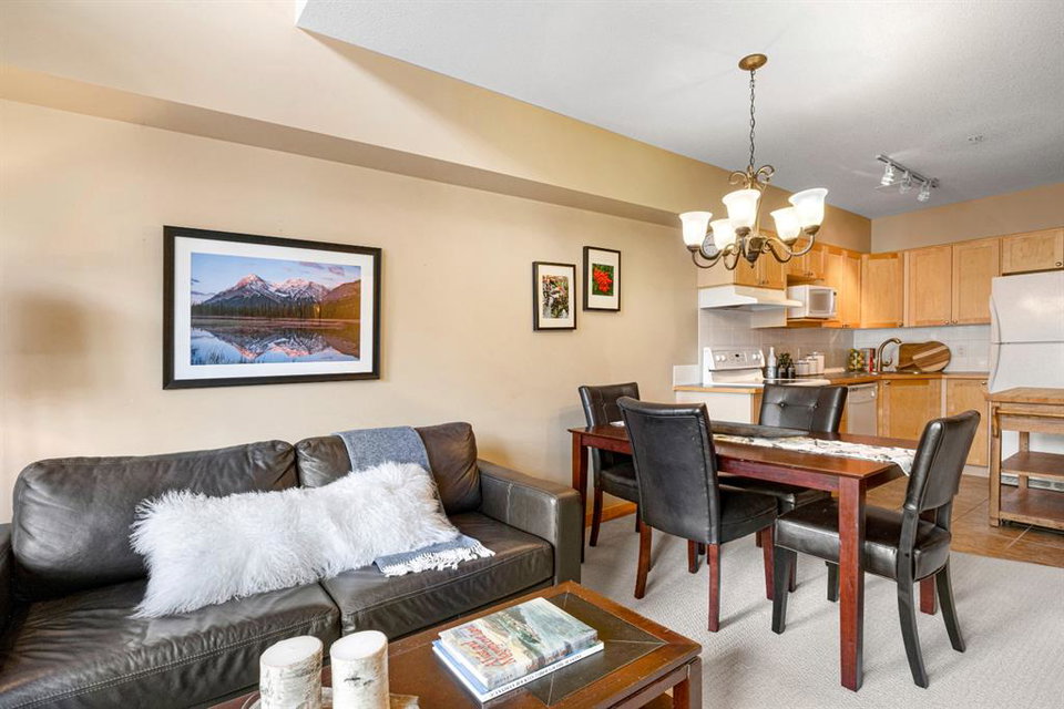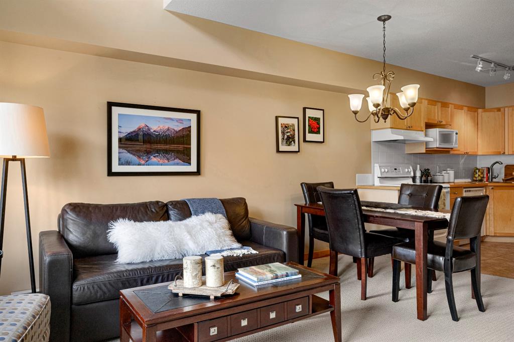 If you are looking for flexibility, then this Hotel Condo is for you!! Tourist Zoning is where you should invest in the Canmore Market; as it allows for full time living, short-term rentals and/or use the rental pool Management Company. This unit is situated in the second phase of the Lodges; offering a convenient location, family-friendly condo complex, walking distance to downtown Canmore, bike paths, shopping, the Bow River and many of the Bow Valley’s popular attractions. Enjoy a loft-style one-bedroom, four-piece ensuite bathroom with stacked washer-dryer, two-piece powder room, open concept kitchen and living-dining area, plus a vaulted ceiling. The beautifully appointed deck offers panoramic mountain views. With heated underground parking, a fitness centre, hot tub and outdoor pool, this property has everything you could ask for. Contact your associate for a viewing. Flexibility / Income Generator / Mountain Living