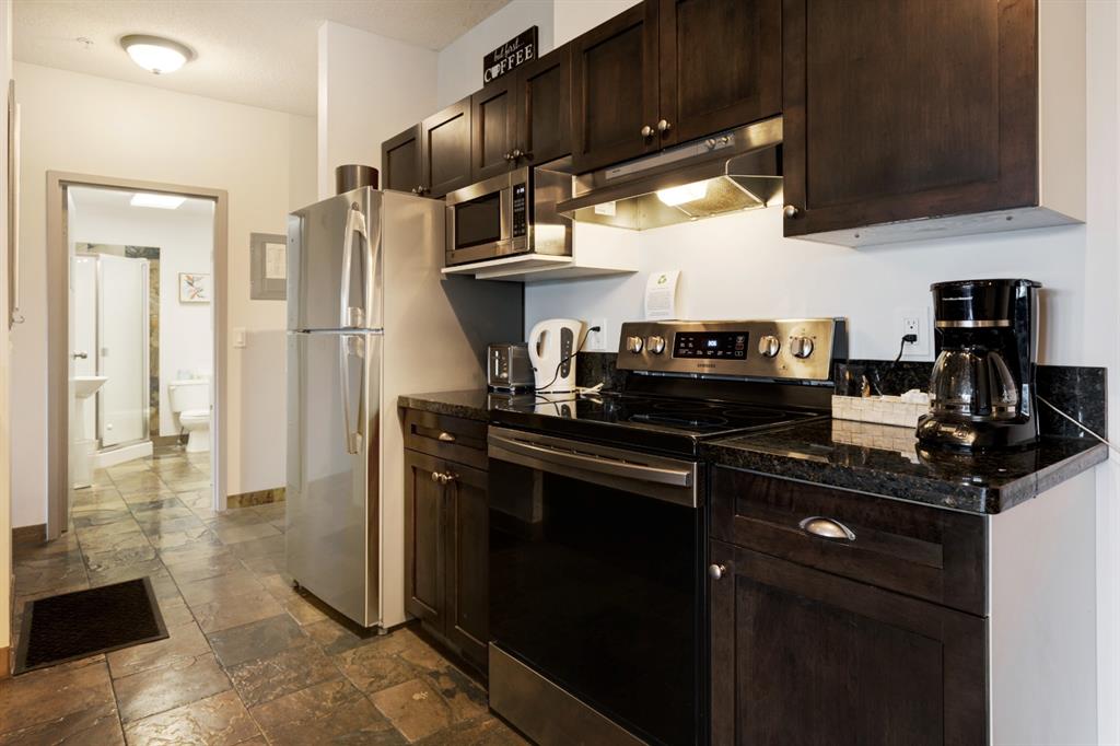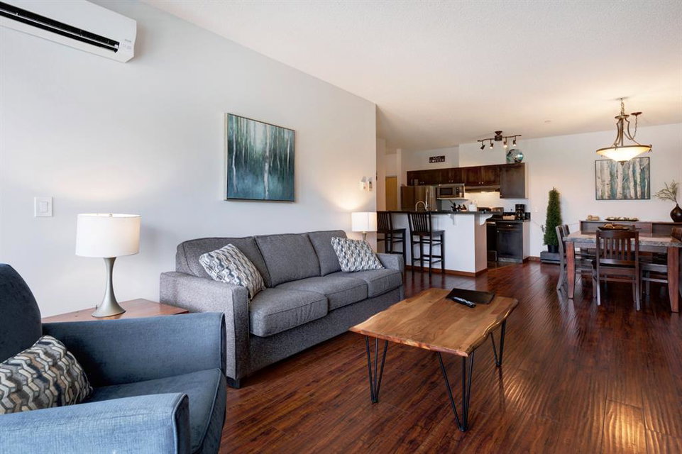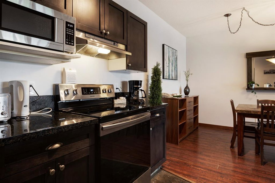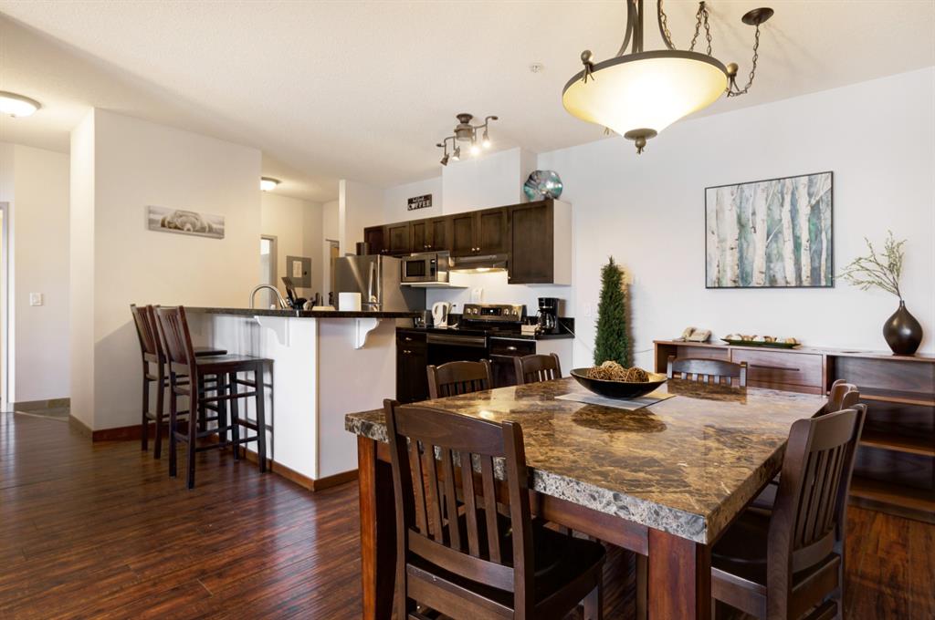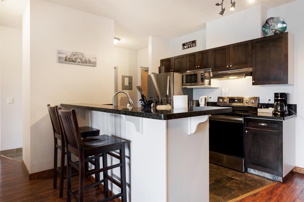 Own a 6 week share of this beautiful 2 bedroom 2 bathroom fractional ownership property, complete with a large balcony with panoramic mountain views. Enjoy 3 peak weeks and 3 floating weeks each year. The suite itself has been recently renovated with brand new quartz counter tops and undermounted sinks in both bathrooms and kitchen and includes insuite laundry. All new kitchen appliances, flooring, furniture and electronics give this mountain oasis a contemporary look. The property has a complimentary games room, full-service spa, outdoor Barbecue area featuring Napoleon grills, and an outdoor gas fire pit. As part of Paradise Residence Club, you’ll have access to the indoor water-park, indoor/outdoor hot tubs and fitness facility located at the adjacent property. Owners enjoy the right to occupy their suite, lend it to friends, exchange it through Interval International to more than 3500 properties globally or participate in the established rental program. Excellent location in the heart of Canmore, within walking distance of the downtown core and other local amenities.