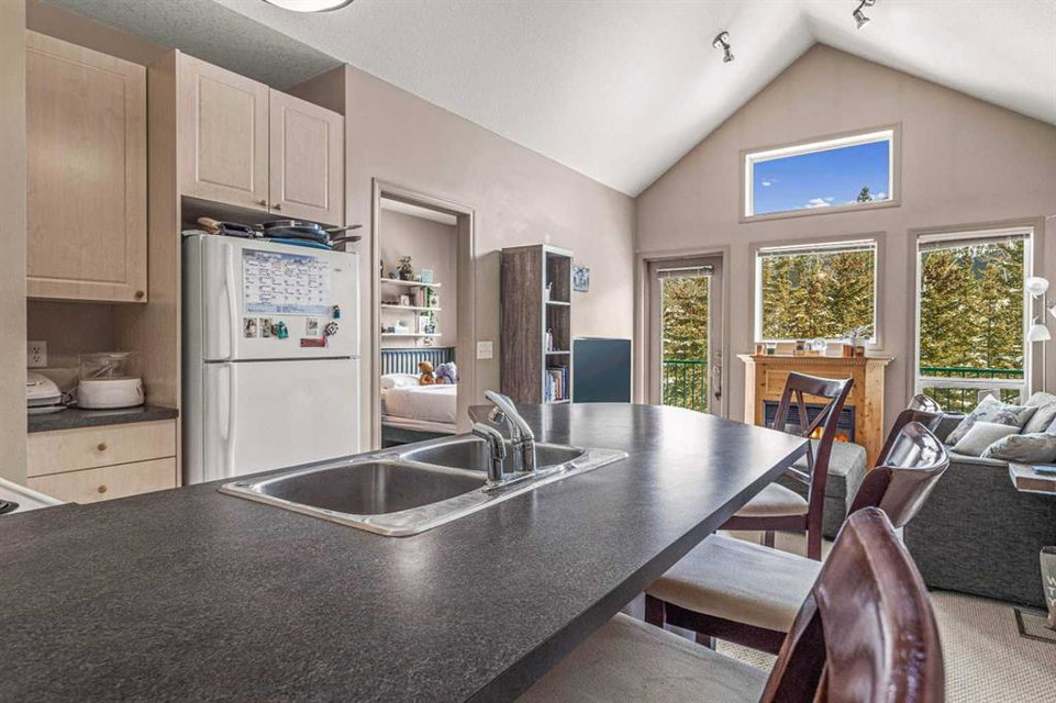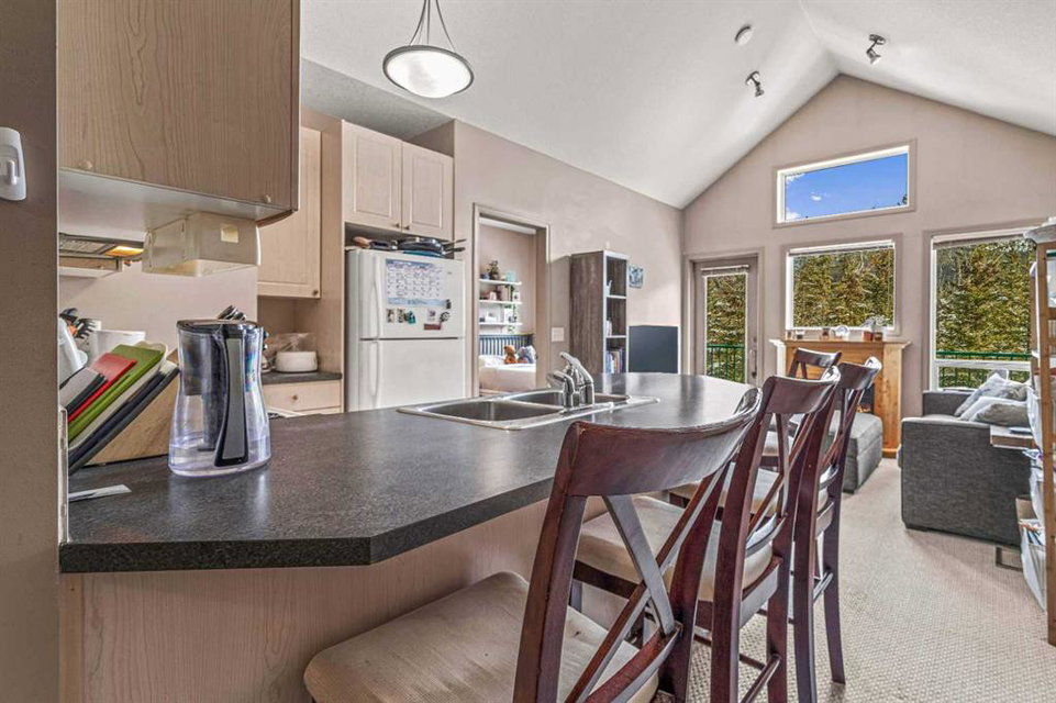 Bright and sunny two bedroom unit in Whiskey Jack Chalets. Two Bedroom Condo with Underground Parking. Top floor facing north and backing on to a quiet forested trail. Open concept kitchen and living area with private patio. This condo includes washer/dryer, underground parking and additional storage in parkade. Centrally located, walking distance to downtown Canmore and just steps away from the town’s interlinking trail system. This would be an ideal first investment or long term rental suite. NOTE: This building does not allow short term rentals. This unit is within the Town of Canmore’s Employee Housing District. Occupants must work a minimum of 20 hours/week in the Bow Valley. No short-term rentals allowed in this building.