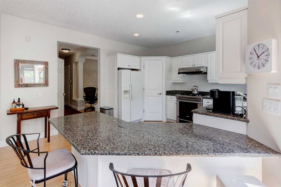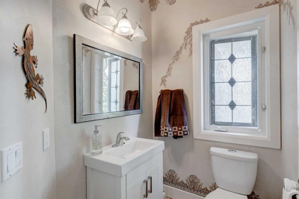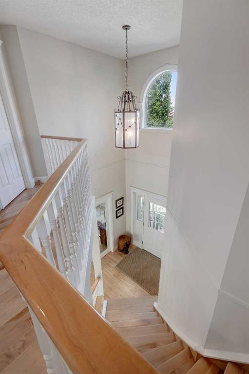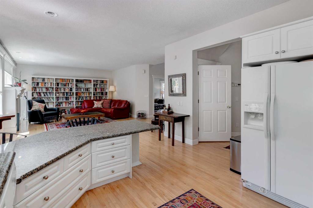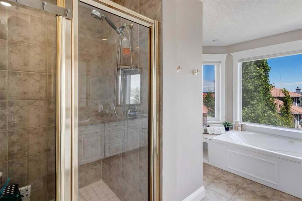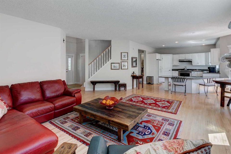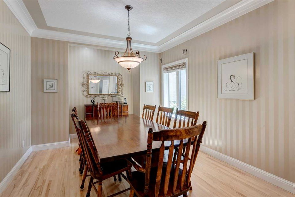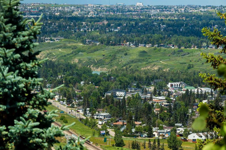 RARE OFFERING – Custom built Executive Home on Patrick View with over 3500 sq ft of developed space BACKING SOUTH onto an ENVIRONMENTAL RESERVE. This home impresses on all levels and shows pride of ownership throughout. Main floor opens to a spacious foyer with French doors into the den with wonderful street vista views, and flows through to the Great Room that exhibits oversized SOUTH facing windows and a cosy fireplace. Gourmet Kitchen features granite counters, gas stove, serving bar and a spacious nook that opens onto the SOUTH BACKYARD oasis. Main floor also features a formal dining room, a large walk-through cloak room and a 1/2 bath. Ascend the stairs to find the main bathroom, upper laundry and 4 bedrooms including a large front bedroom that could also be used as a bonus room plus a spacious primary that features its own fireplace, a well appointed ensuite and partial RIVER VIEWS across to the EAST. The fully finished basement offers significant natural light through the oversized windows and features a great layout including a large recreational room, full bathroom, two rooms that can be used as bedrooms and a third separate room with built-in cabinetry for another den or hobby room. The BACKYARD is an OASIS – the care and attention to this garden displays an abundance of foliage, water features, and tiered deck areas for QUIET RELAXING and outdoor living. Some of the upgrades include PEX plumbing (no PolyB), hardwood on the upper floor, and window glass replacement in 2021. This home is a dream come true for its new owners and is only 15 minutes to downtown and a quick exit to the mountains!