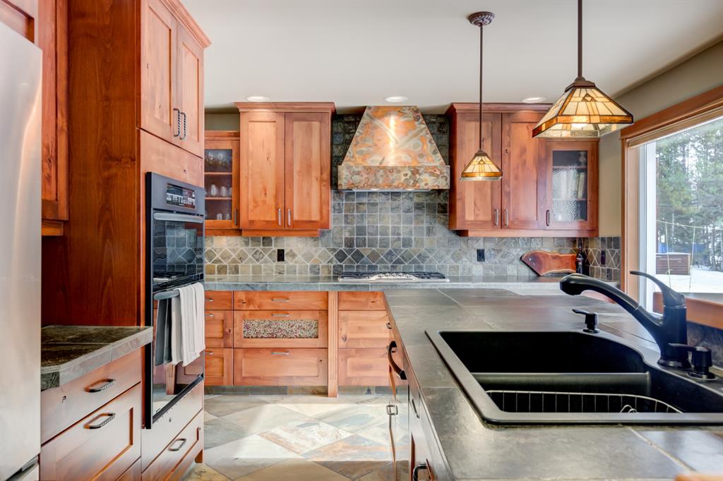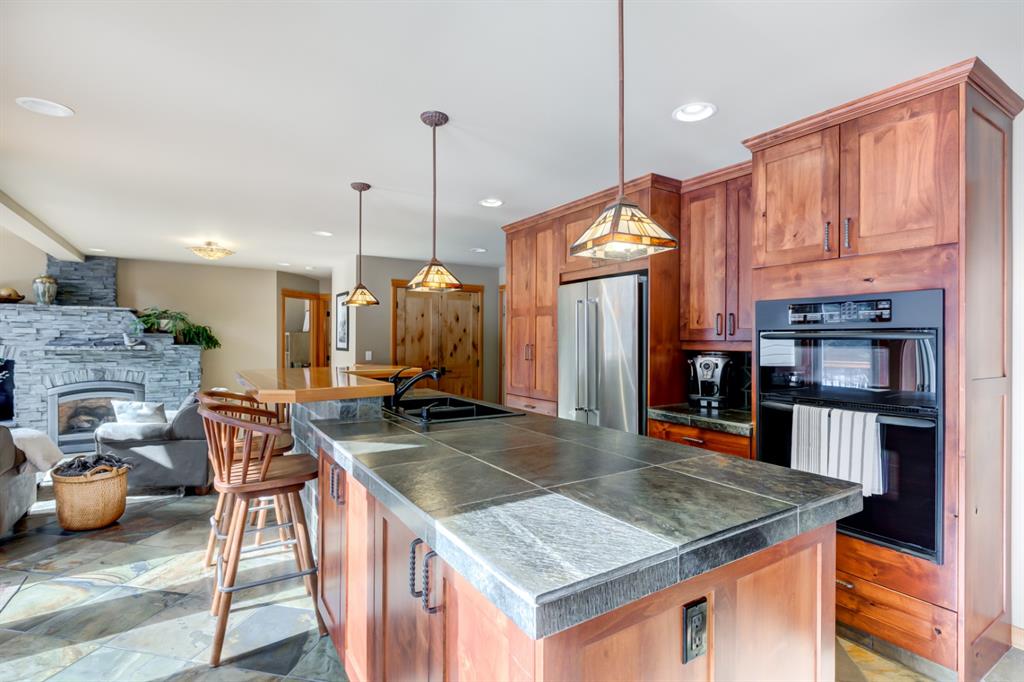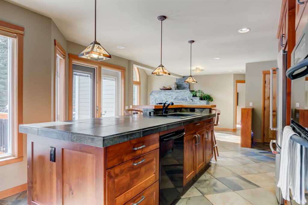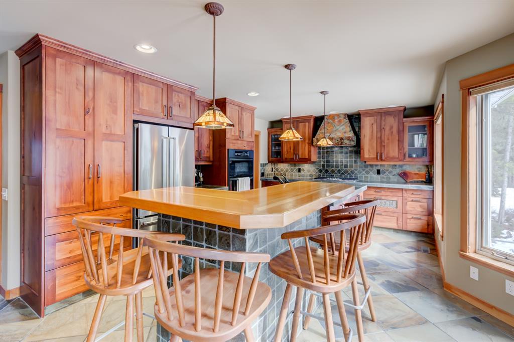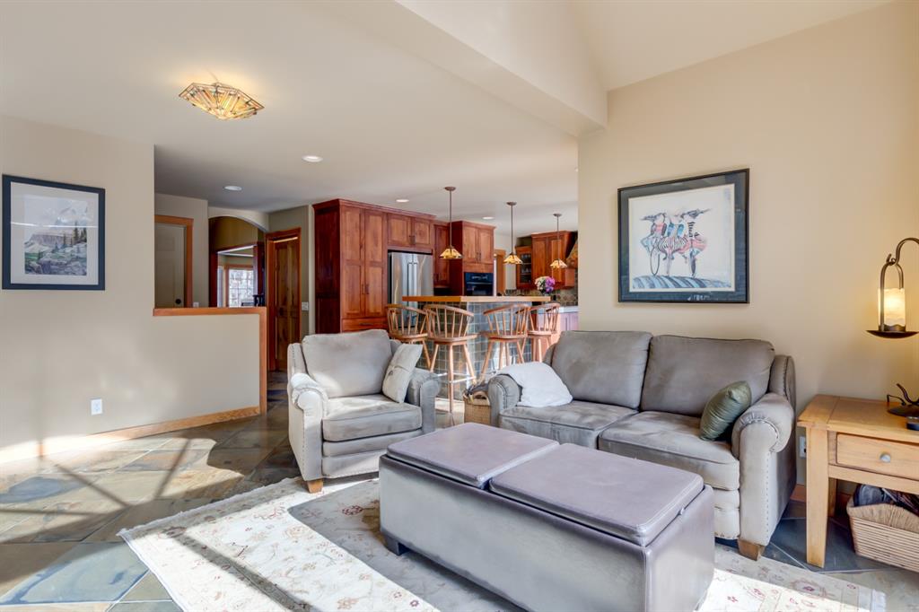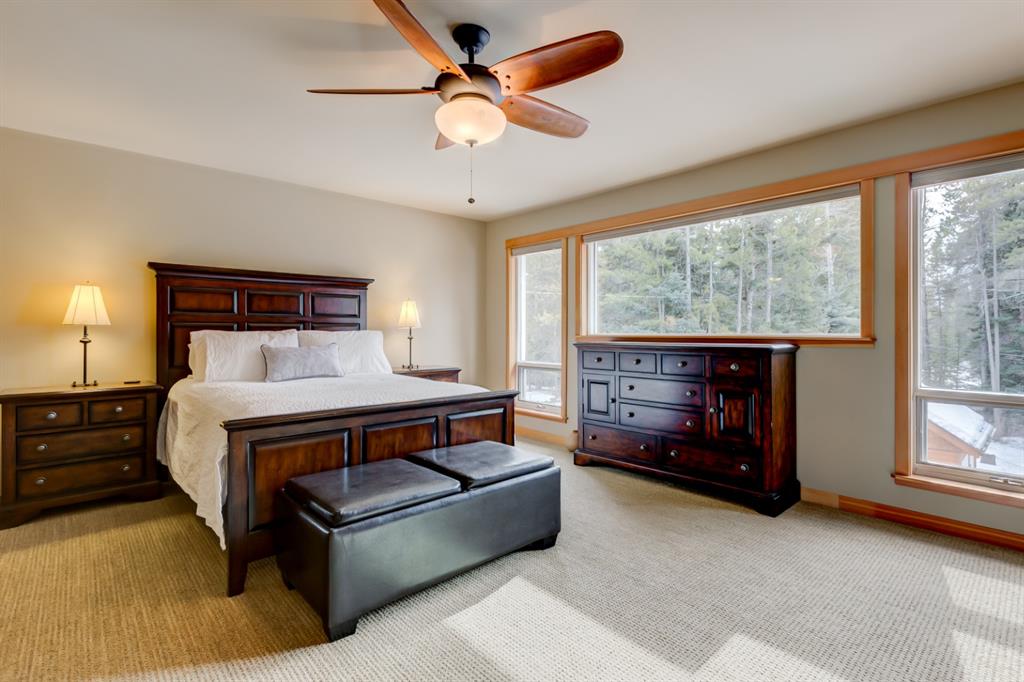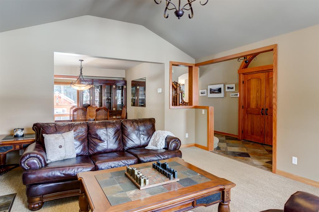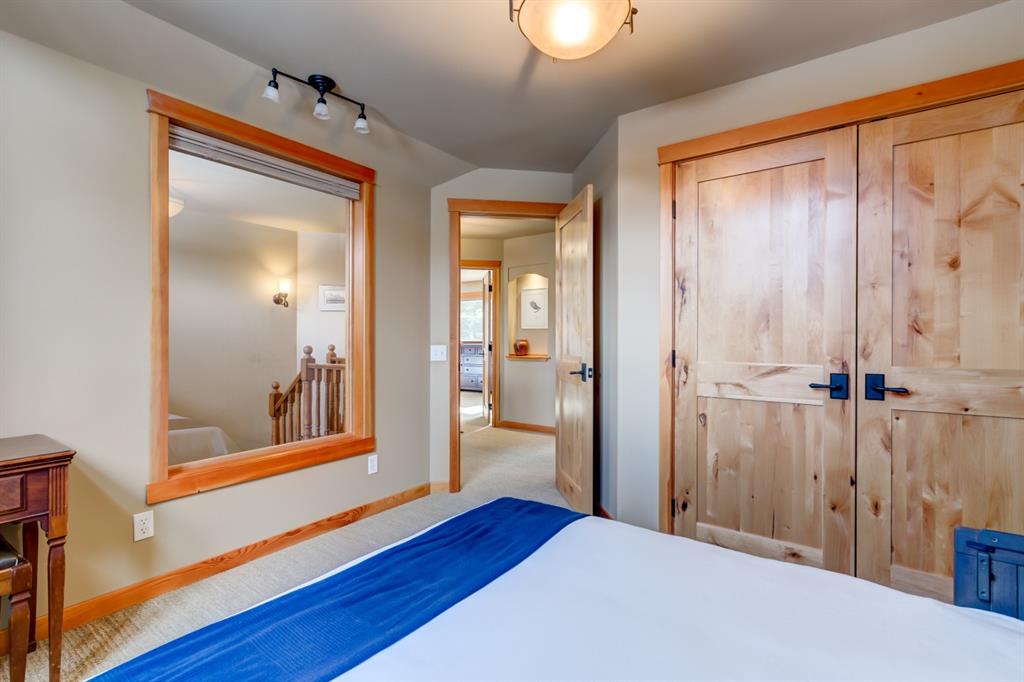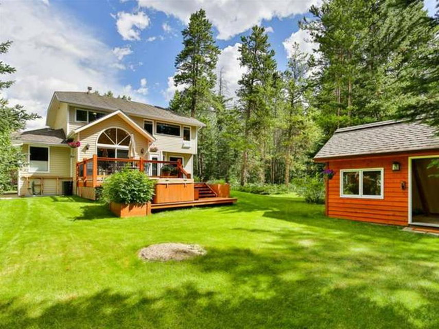 This incredibly unique property has lush landscaping and backs onto a serene Environmental Reserve & Pond with path system access by a trail from this yard. Upstairs features an oversize master bedroom with walk in closet and ensuite with shower. Two other bedrooms share a 4 piece bath bringing this property’s sleeping capacity to 14. Views from every window in this mountain home will delight you. The overheight garage has room to hang your bikes, kayaks and other mountain toys. The 6 foot crawlspace with concrete floor provides a huge amount of dry storage via stair access. Located in one of Canmore’s most sought after neighborhoods, this retreat is a rare find on a quiet, low traffic street only blocks from downtown, schools & golf. This “must see” will charm and captivate you.
