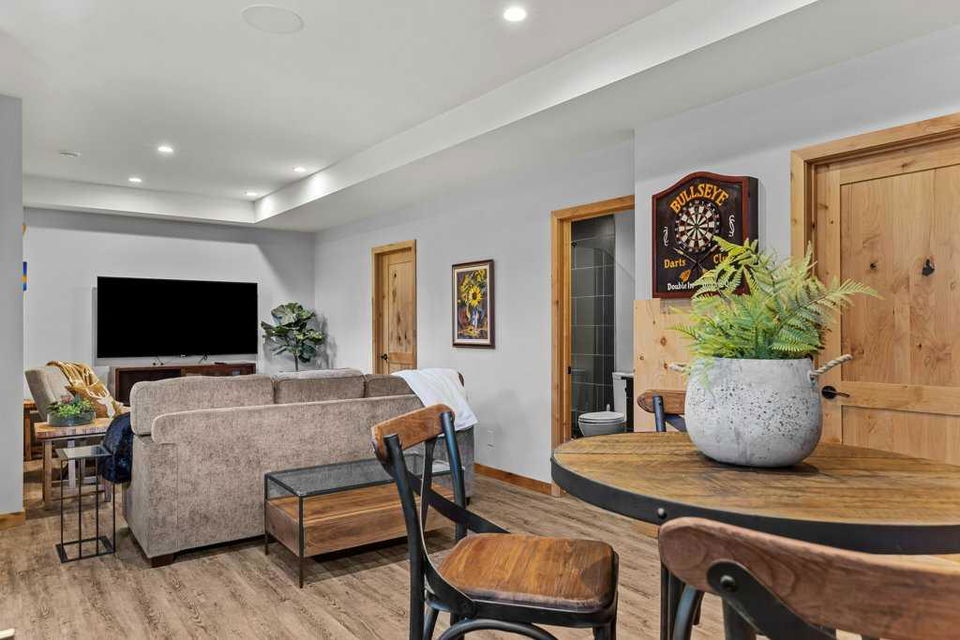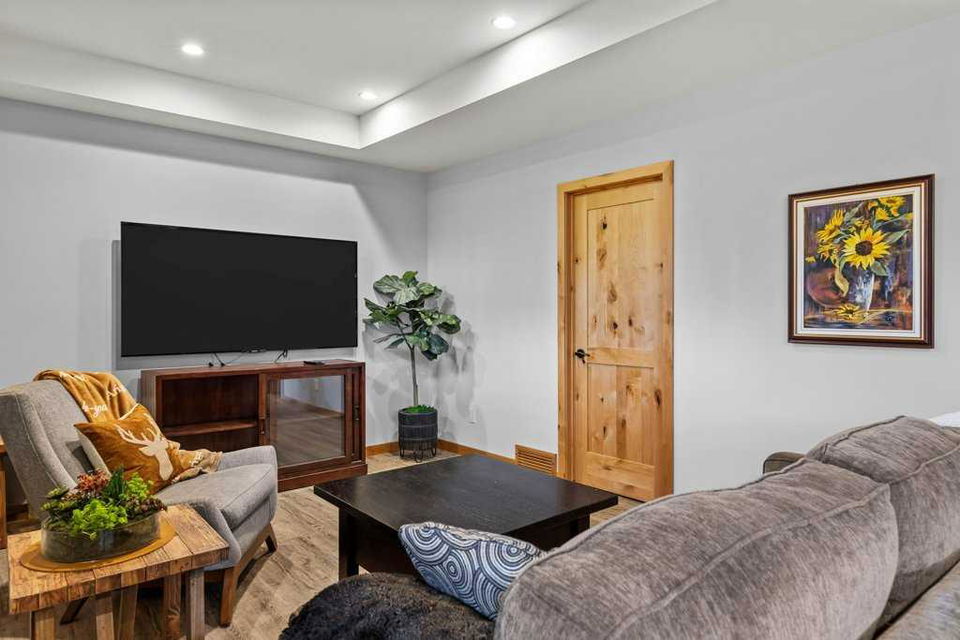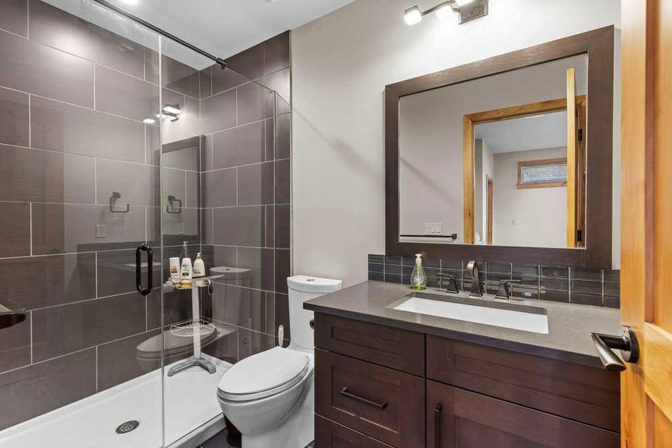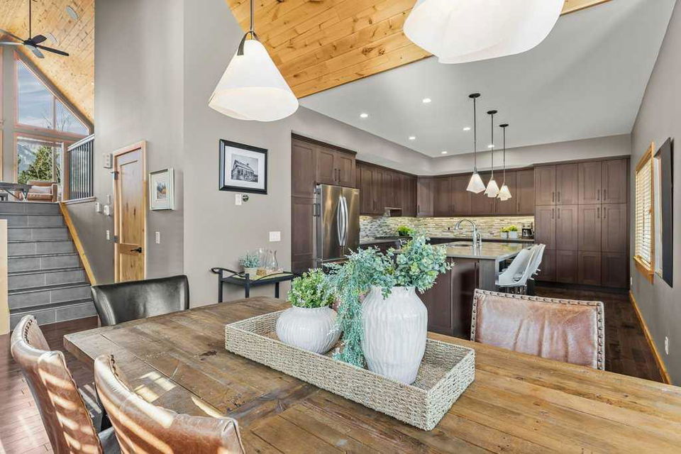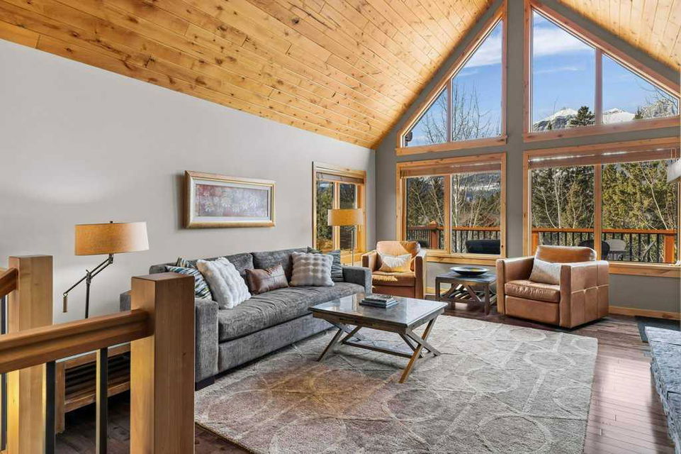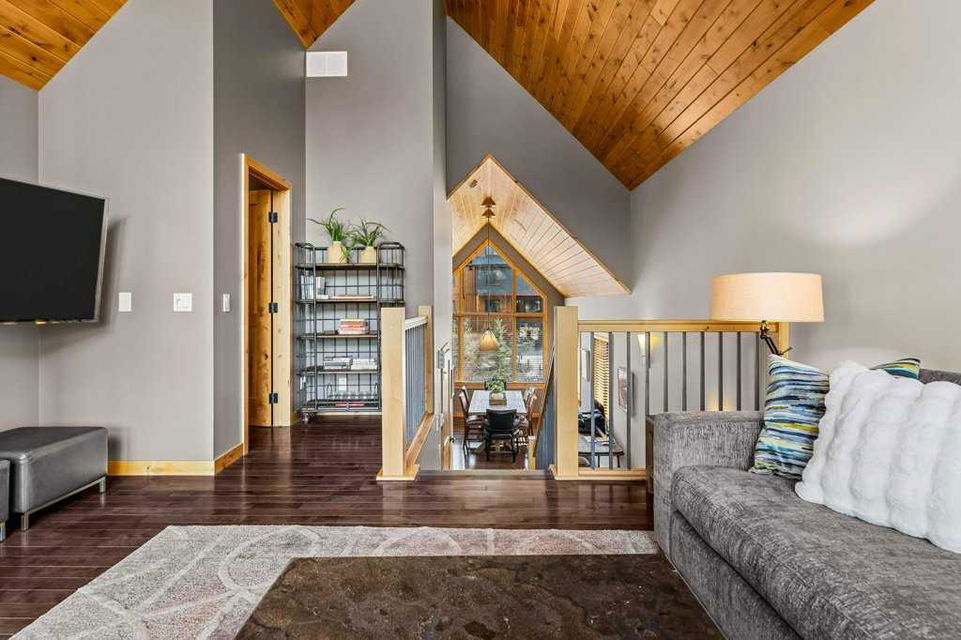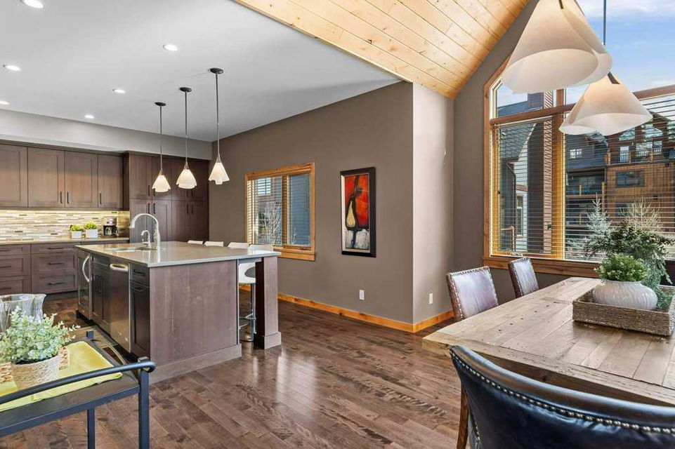 A rare opportunity to acquire one of the coveted Creekside Villas overlooking Spring Creek – an end unit with double garage, soaring ceilings and unimpeded views. The great room is full WOW with mountains framed in every window. Entertain with grace in a kitchen with abundant cabinetry, storage, island seating for 4, plus a generous dining area. All 3 bedrooms overlook the quiet creek side of the property; the primary is complete with steam shower and soaker tub. Two outdoor living spaces – the upper deck with outstanding views, and the covered lower patio – a perfect location to add a private hot tub if you wish. Bonus full basement provides additional games/media room, 5th bath, and direct exterior access.